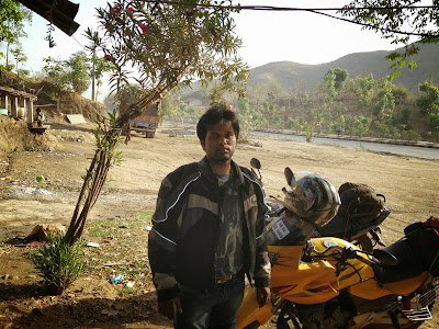 Later we crossed Aurangabad and near to Tajpur at mid night Nirnajan bike's engine started to make some noise due less oil. That area was dense forest and there was just one locked out house, we stopped there as there was a light and we were checking the bikes engine oil..then a police jeep came with an Inspector and 5 armed commandos(with AK-47, grenades)..Inspector started enquiring our whereabouts, then he said it is a naxalite area and It was bad idea to stop there. He was very friendly infact he helped us to change the engine oil..we just had one bottle of engine oil as a backup..so he asked his driver to take me to nearest petrol station to buy an engine oil. The drive to the petrol station was awesome..it was midnight and breezy, It was a nice feeling to sit in the front seat of the police Jeep..Later he took us to a nearby dabha and treated us with a tea and shared his stories about naxalite hunting and difficulties in his job(with very less salary and overtime duties as less police in his department). An awesome guy he was and a salute to him.